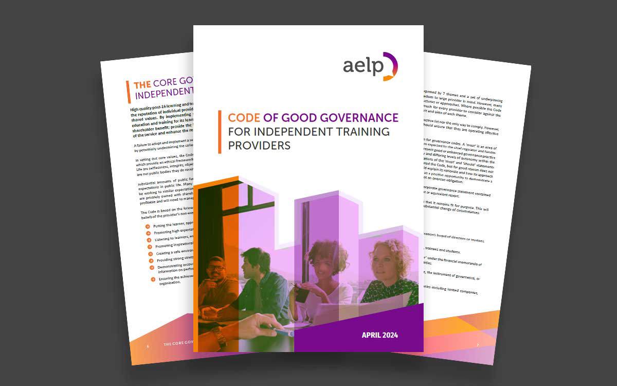 AELP has this week published its revised and updated Code of Good Governance for Independent Training Providers.